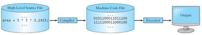 A compiler translates the entire source code into a machine-code file, and the machine-code