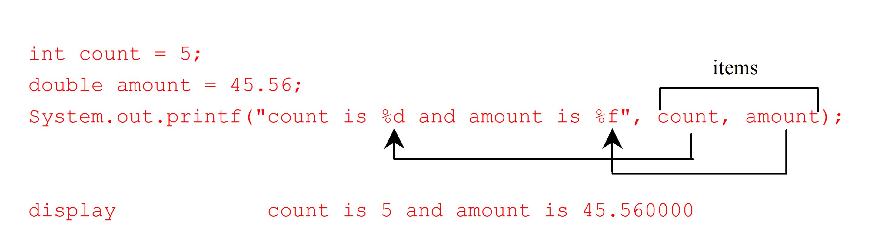 | %e | a number in standard scientific notation | 4.555e+01 |