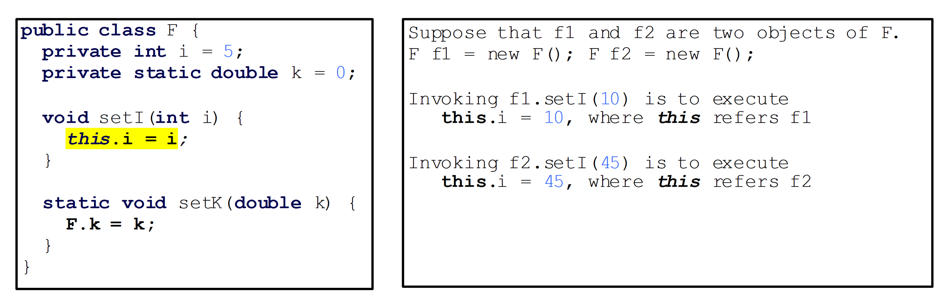 The this keyword is the name of a reference that refers to an object itself. One common use of the this keyword is reference a class’s hidden data fields.
